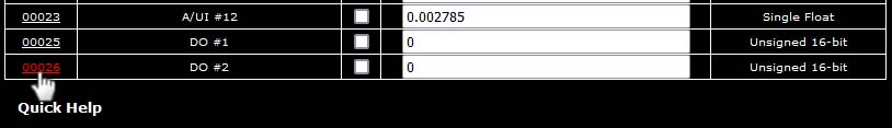 The first 26 registers in the ValuPoint are permanently assigned to the physical I/O points. Those register numbers are illustrated in the first screen shot in Section 4.1 above.
