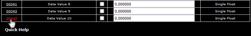 You may select hexadecimal display of data. This only applies to display on the local web pages, and does not change what Modbus sees externally (Modbus only sees a collection of bits, and that fact never changes). Hexadecimal display of a floating point value is probably meaningless, but hexadecimal display of registers containing a set of status bits packed into a single register is often easier to interpret when displayed as hexadecimal.