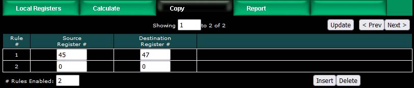 The above rule would cause the following copy to happen. Note that "copy" also means data reformatting. Therefore, if you need to convert a number to a character string (or vice versa), simply copy it from one register to the other. In this example, our copy rule is converting floating point to an ASCII string ready to be sent to a display device.